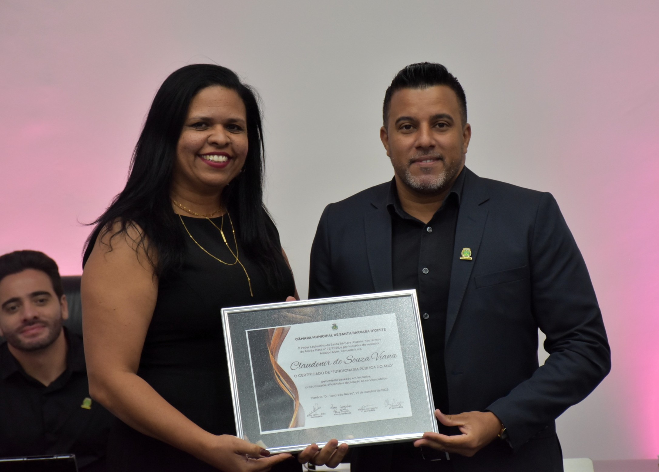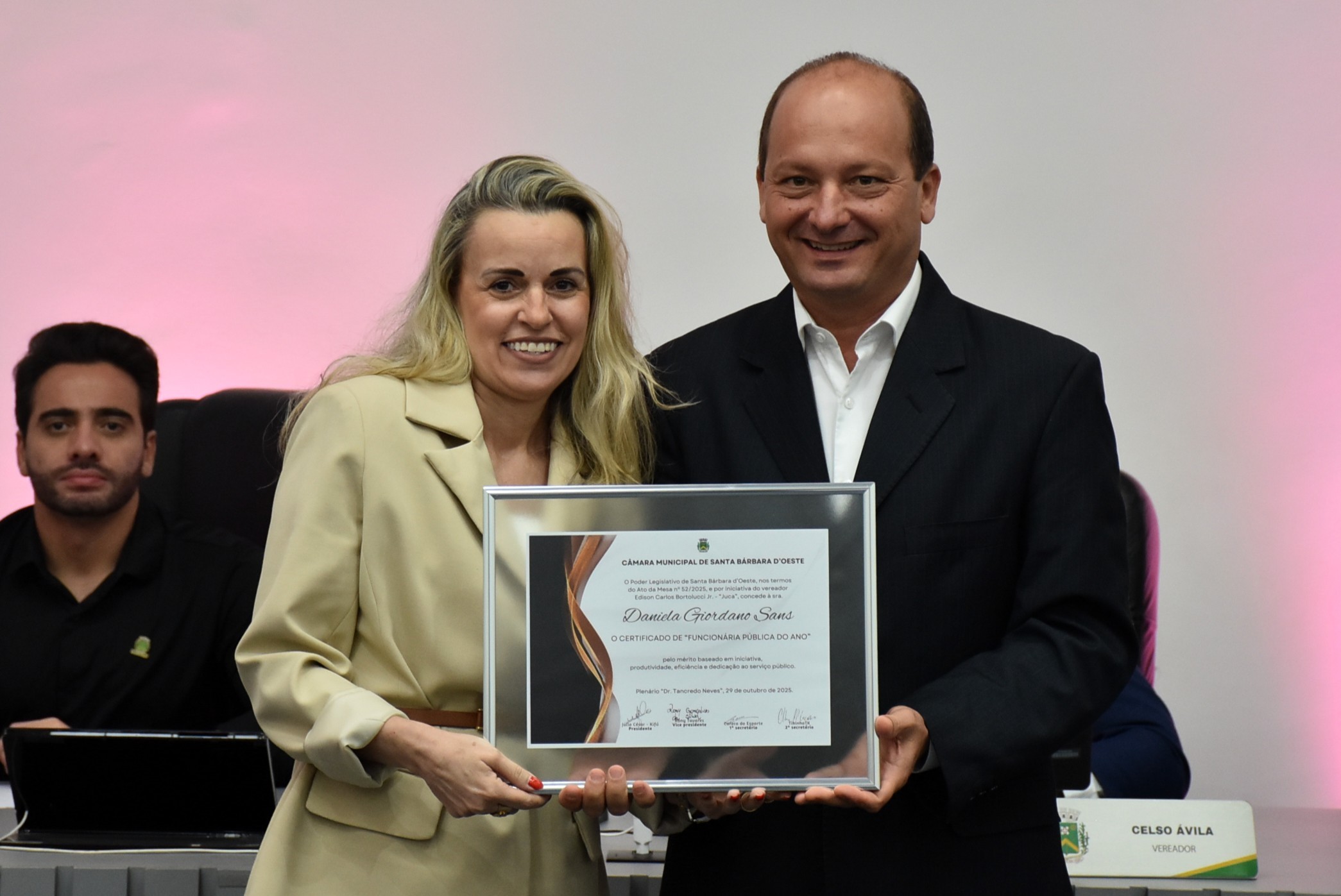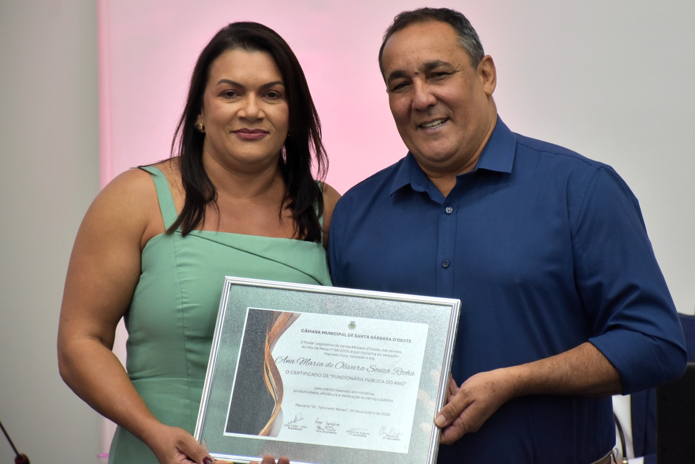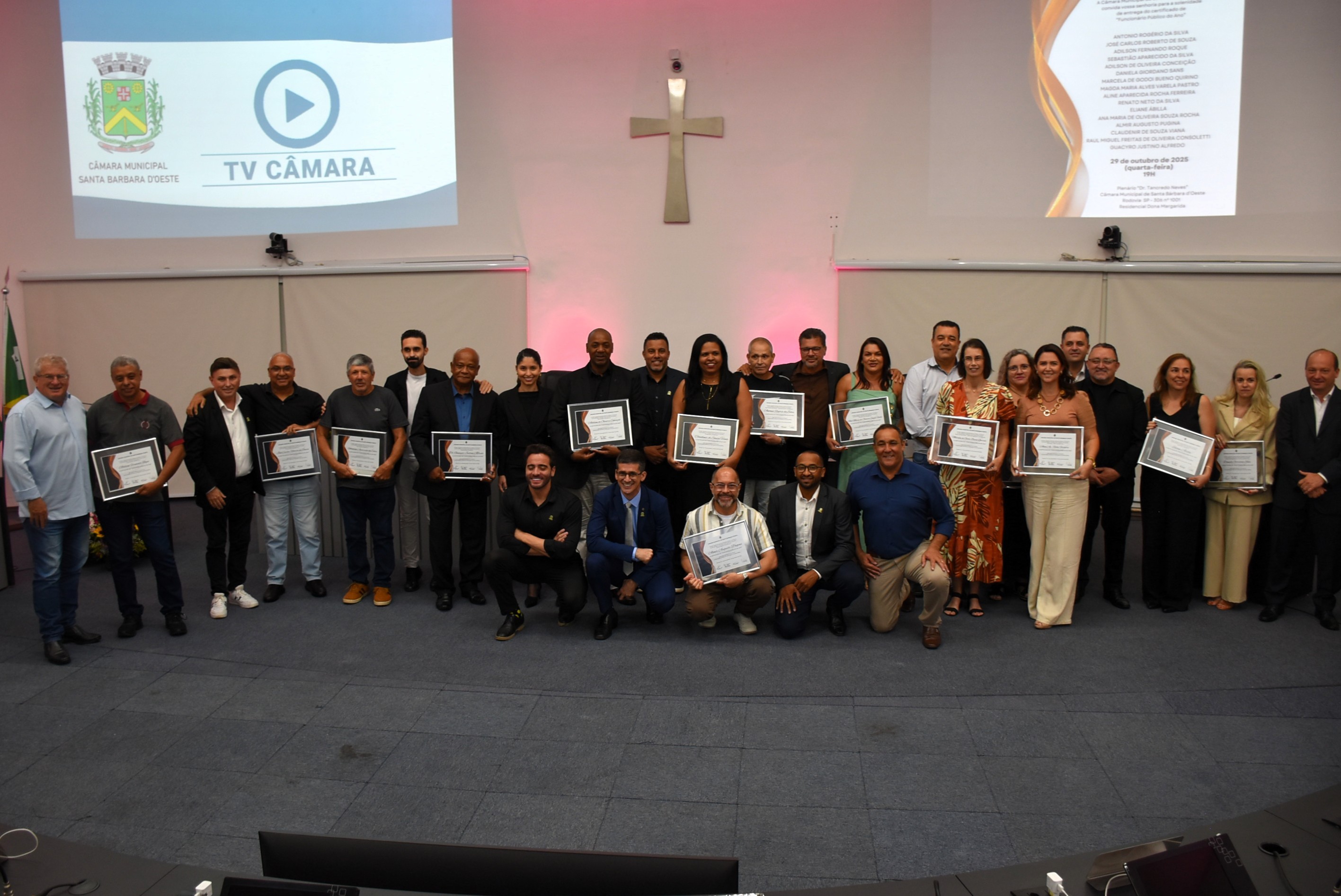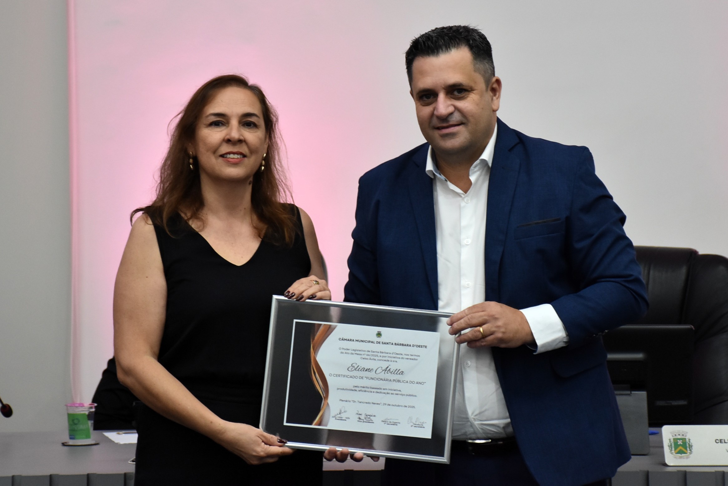 A Câmara Municipal de Santa Bárbara d’Oeste realizou, na noite desta quarta-feira (29), a solenidade de entrega do certificado de “Funcionário Público do Ano”, no Plenário “Dr. Tancredo Neves”. A homenagem, instituída pelo Decreto Legislativo nº 02/2014, de autoria do vereador Celso Ávila, reconhece servidores municipais que se destacaram pelo mérito, dedicação, eficiência e compromisso com o serviço público e com a comunidade barbarense.