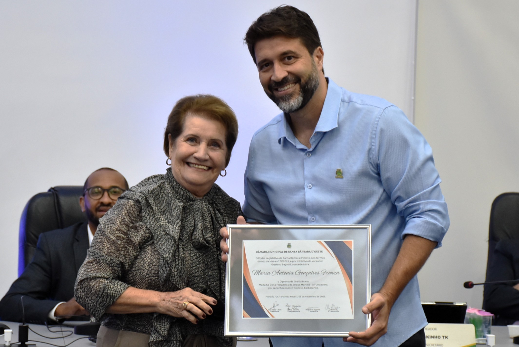 A Câmara Municipal de Santa Bárbara d’Oeste realizou, na noite de quarta-feira (5), a solenidade de entrega da Medalha Dona Margarida da Graça Martins – A Fundadora e do Diploma de Gratidão. As honrarias reconhecem cidadãos e instituições que prestaram relevantes serviços ao desenvolvimento do município.