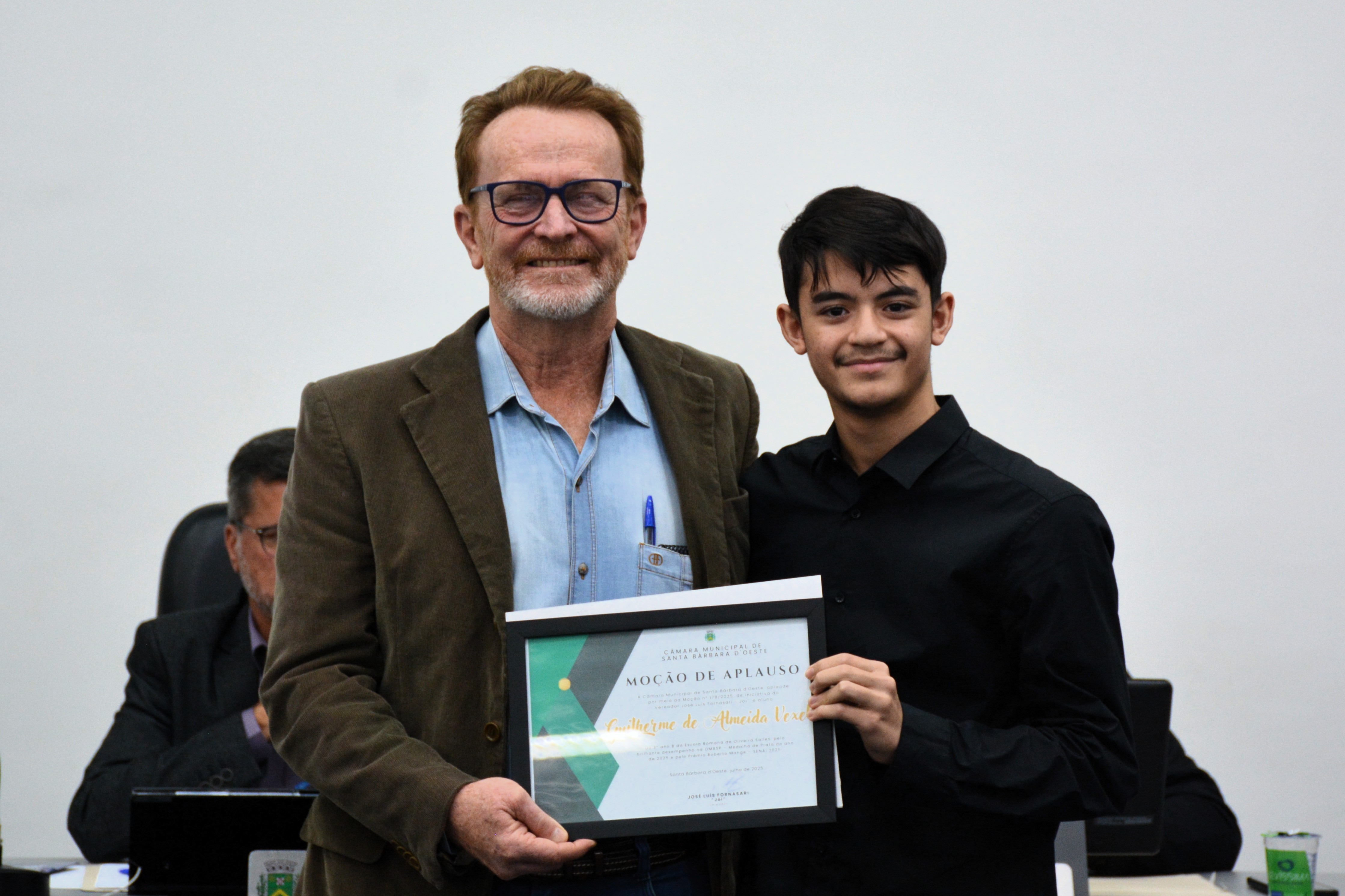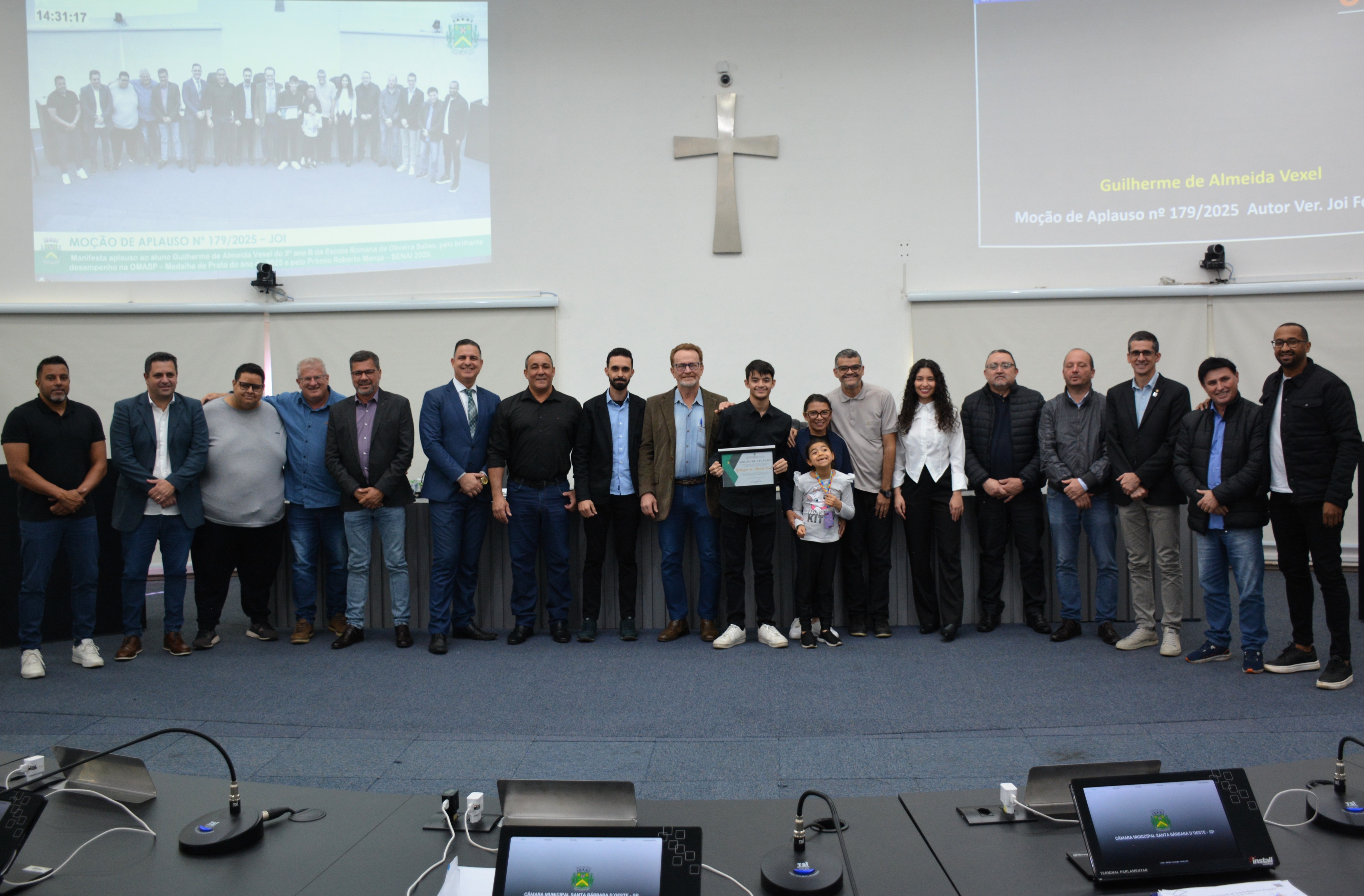 Os parlamentares aprovaram ainda quatro moções, incluindo dois votos de aplauso. A Moção nº 179/2025, do vereador Joi Fornasari, homenageia o aluno Guilherme de Almeida Vexel, da Escola Romana de Oliveira Salles, pelo desempenho na OMASP – com medalha de prata – e pelo Prêmio Roberto Mange, concedido pelo SENAI. A Moção nº 180/2025, do vereador Arnaldo Alves, reconhece os 15 anos de atuação da ACESBO – Associação dos Condutores Escolares de Santa Bárbara d’Oeste.