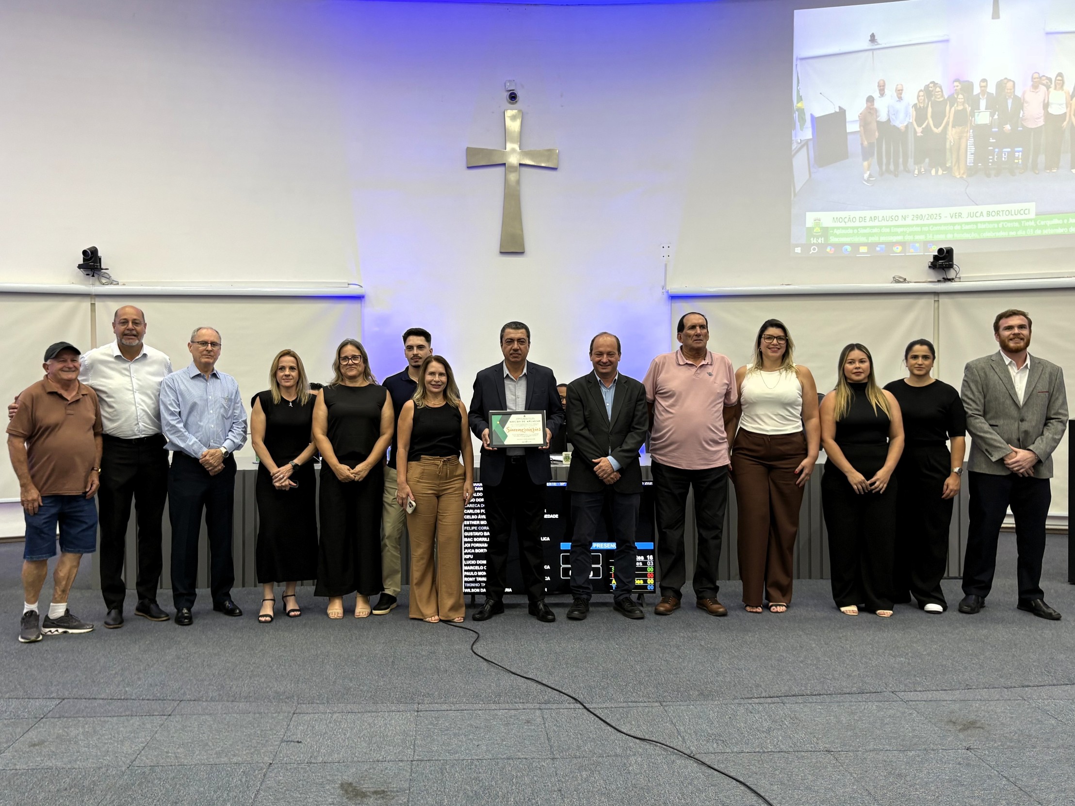 Durante a sessão, também foram entregues quatro moções de aplauso. O vereador Juca Bortolucci homenageou o Sincomerciários pelos seus 34 anos de fundação, representado pelo presidente Valdeir Matheus Ribeiro. O vereador Joi Fornasari prestou homenagem à Banda Estrela Perdida, reconhecendo sua contribuição à preservação e valorização da música sertaneja.