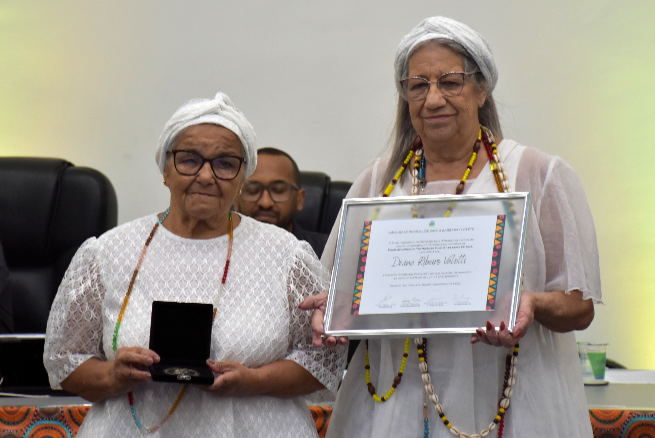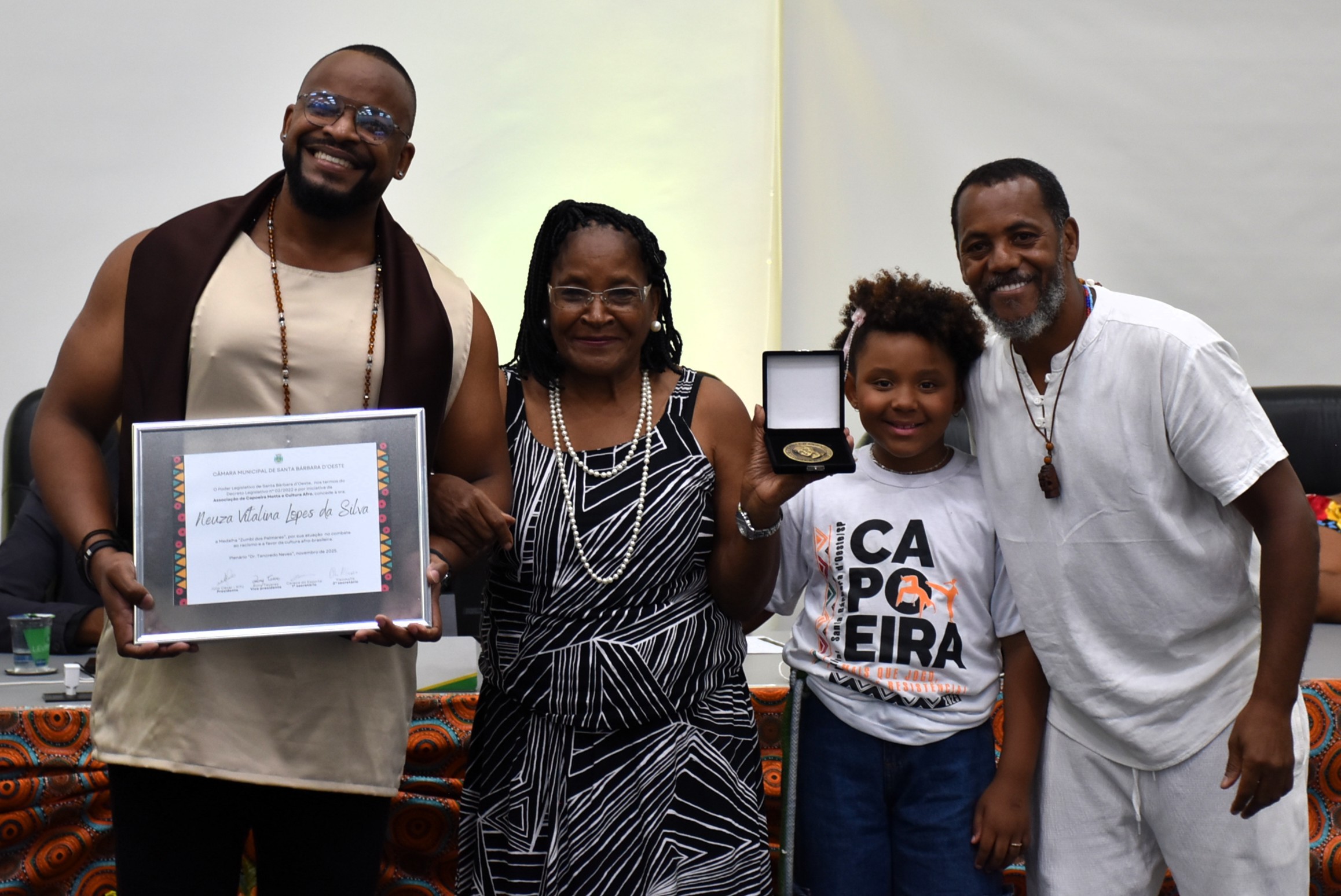 A Câmara Municipal de Santa Bárbara d’Oeste realizou, na noite desta segunda-feira (17), a sessão solene de entrega da Medalha de Mérito Zumbi dos Palmares, honraria instituída pelo Decreto Legislativo nº 02/2002 e concedida a pessoas, grupos ou entidades que se destacam no combate ao racismo e na valorização da cultura afro-brasileira no município.