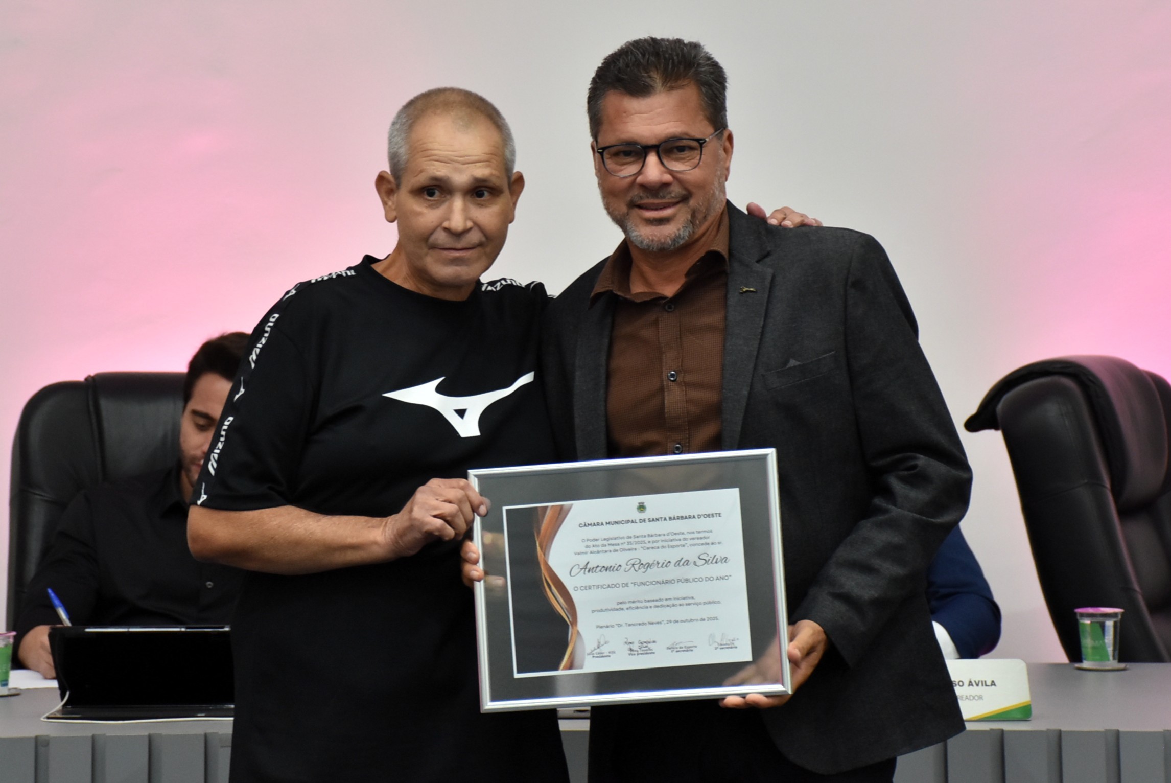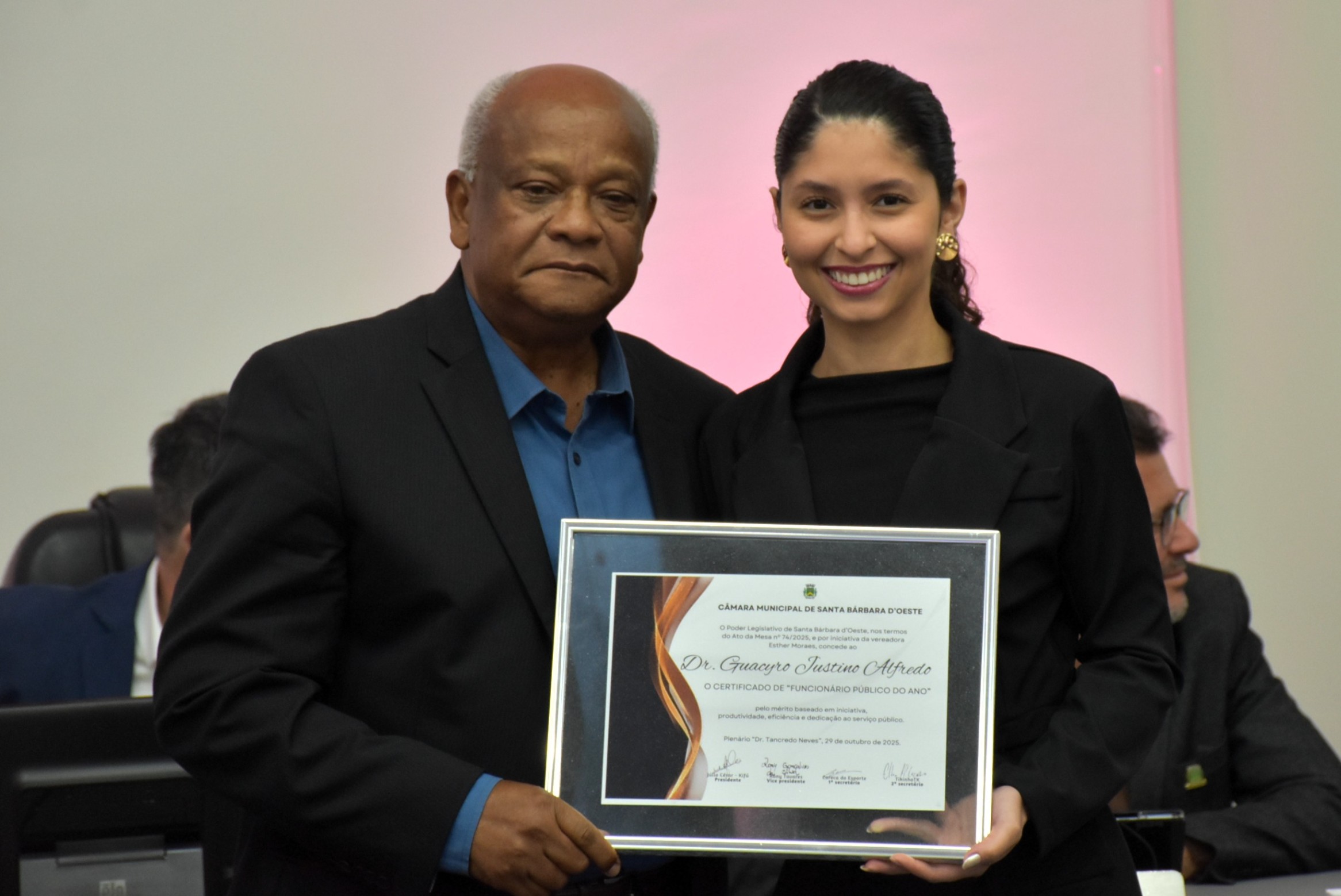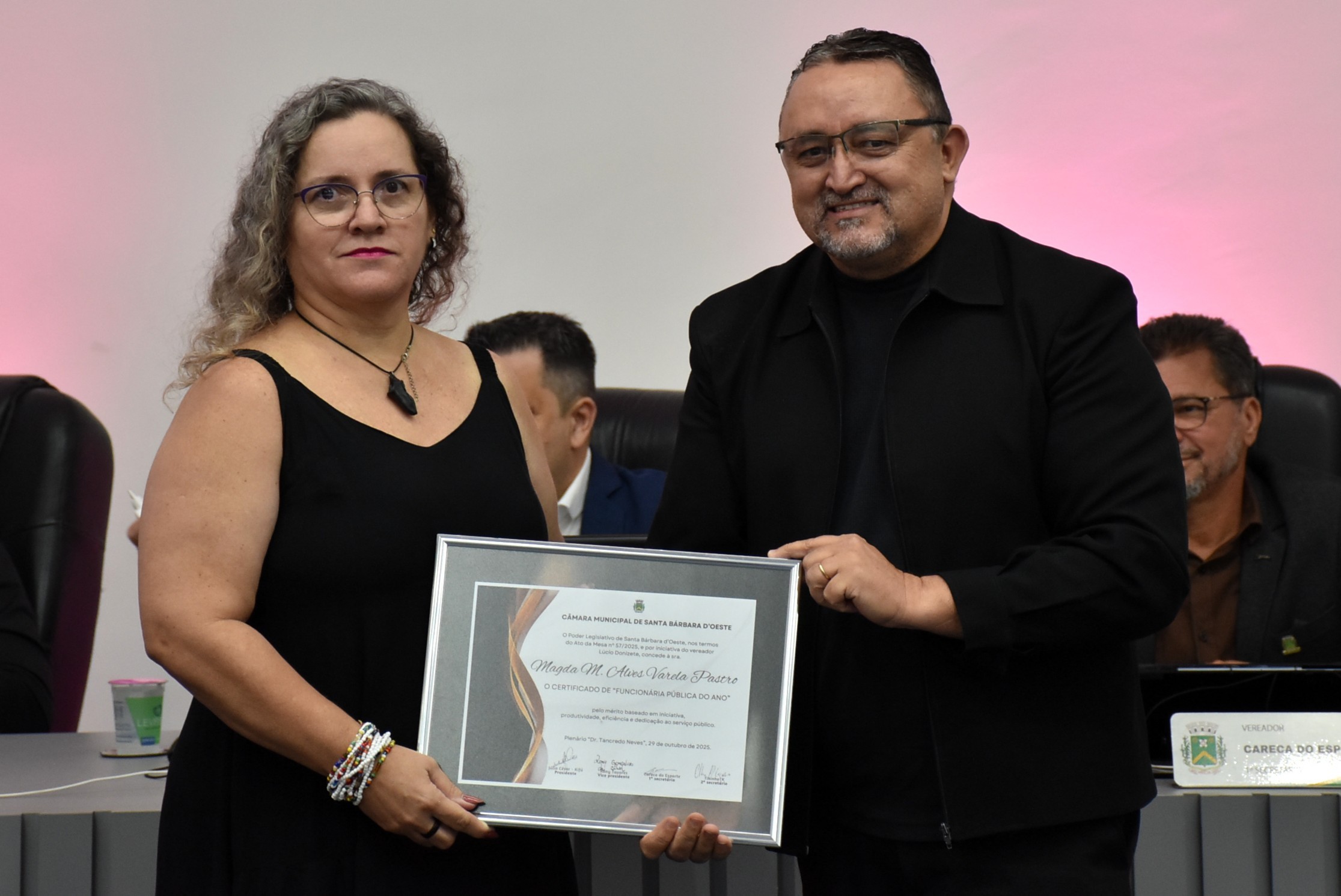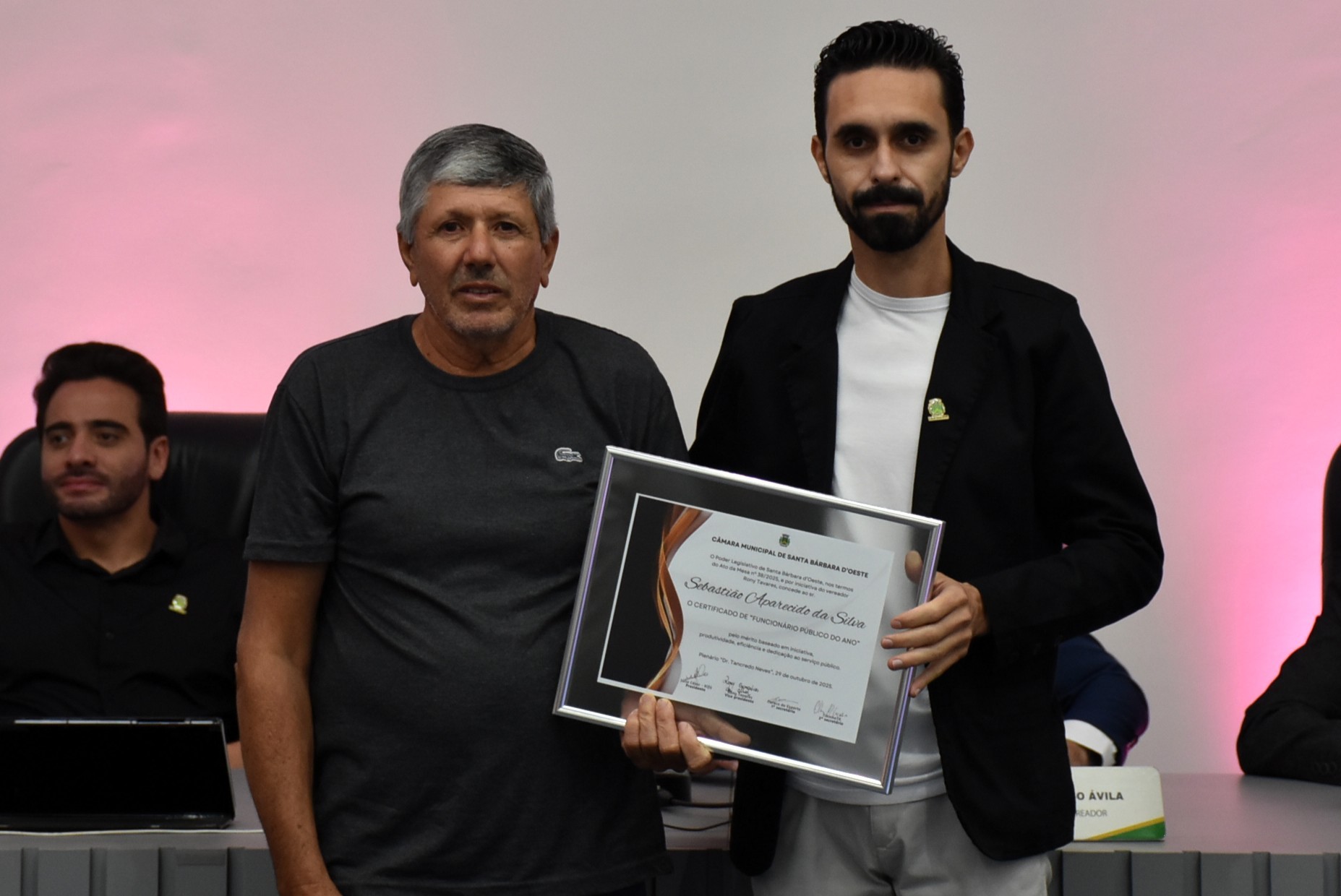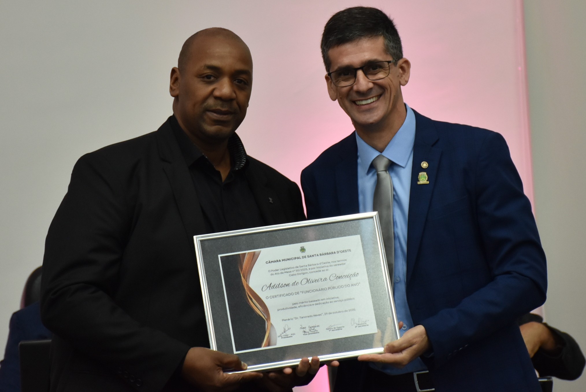 A Câmara Municipal de Santa Bárbara d’Oeste realizou, na noite desta quarta-feira (29), a solenidade de entrega do certificado de “Funcionário Público do Ano”, no Plenário “Dr. Tancredo Neves”. A homenagem, instituída pelo Decreto Legislativo nº 02/2014, de autoria do vereador Celso Ávila, reconhece servidores municipais que se destacaram pelo mérito, dedicação, eficiência e compromisso com o serviço público e com a comunidade barbarense.