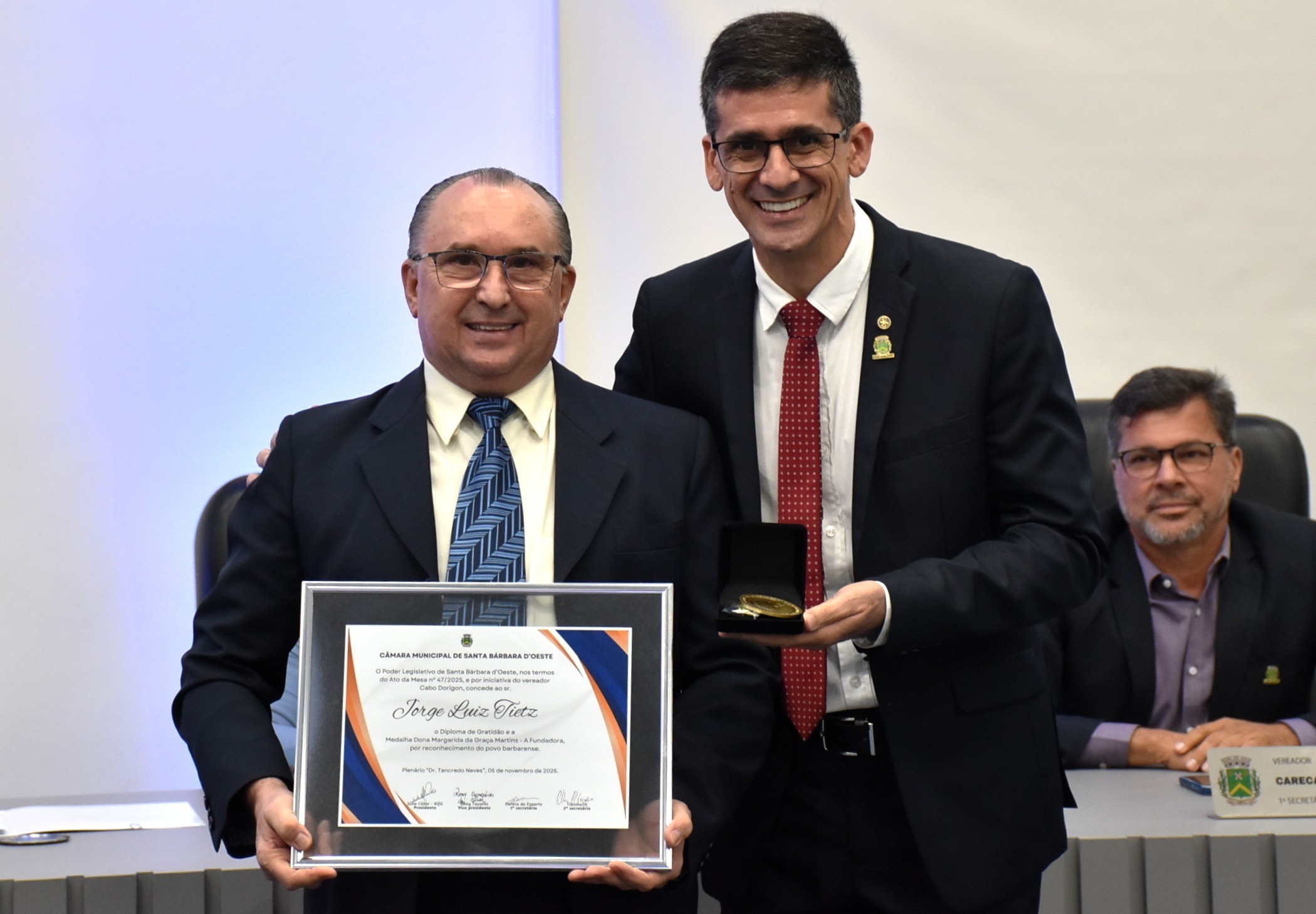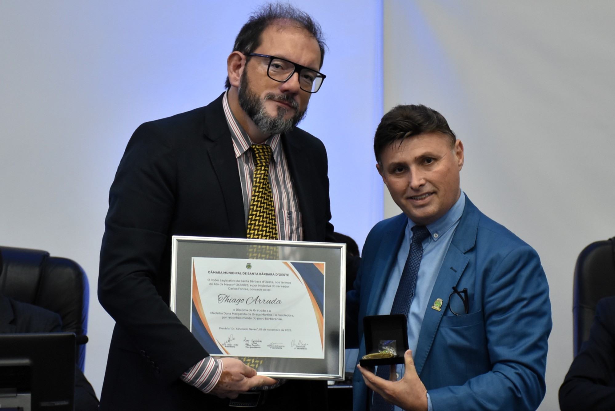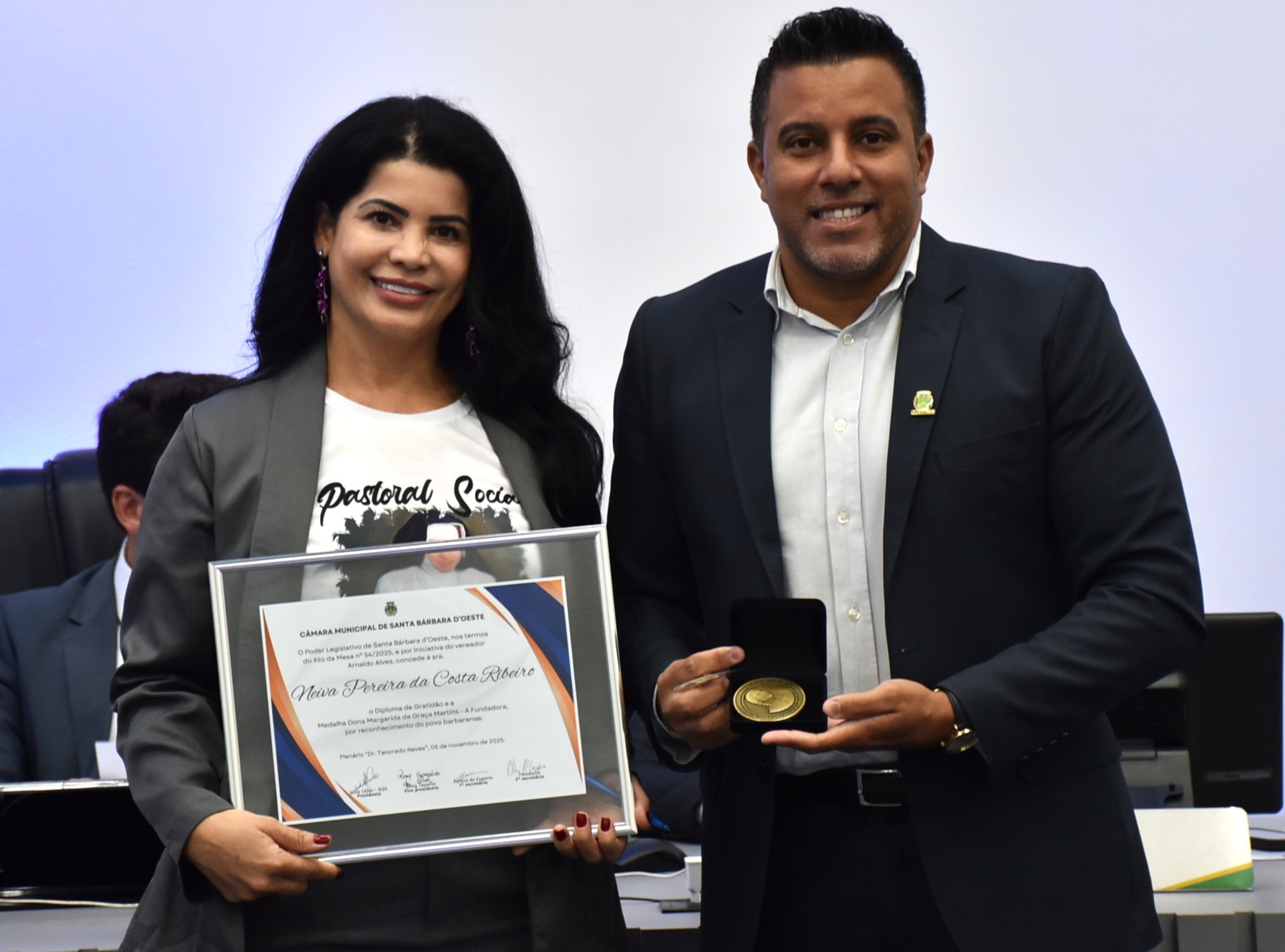 A Câmara Municipal de Santa Bárbara d’Oeste realizou, na noite de quarta-feira (5), a solenidade de entrega da Medalha Dona Margarida da Graça Martins – A Fundadora e do Diploma de Gratidão. As honrarias reconhecem cidadãos e instituições que prestaram relevantes serviços ao desenvolvimento do município.