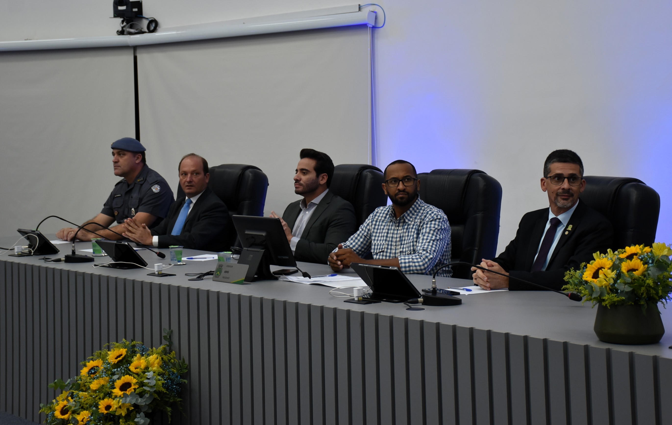 O evento contou com a presença do vice-prefeito Felipe Sanches, do presidente da Câmara, Júlio César Kifú, do vereador Juca Bortolucci, autor da honraria, e do vereador Cabo Dorigon, além de autoridades das forças de segurança.