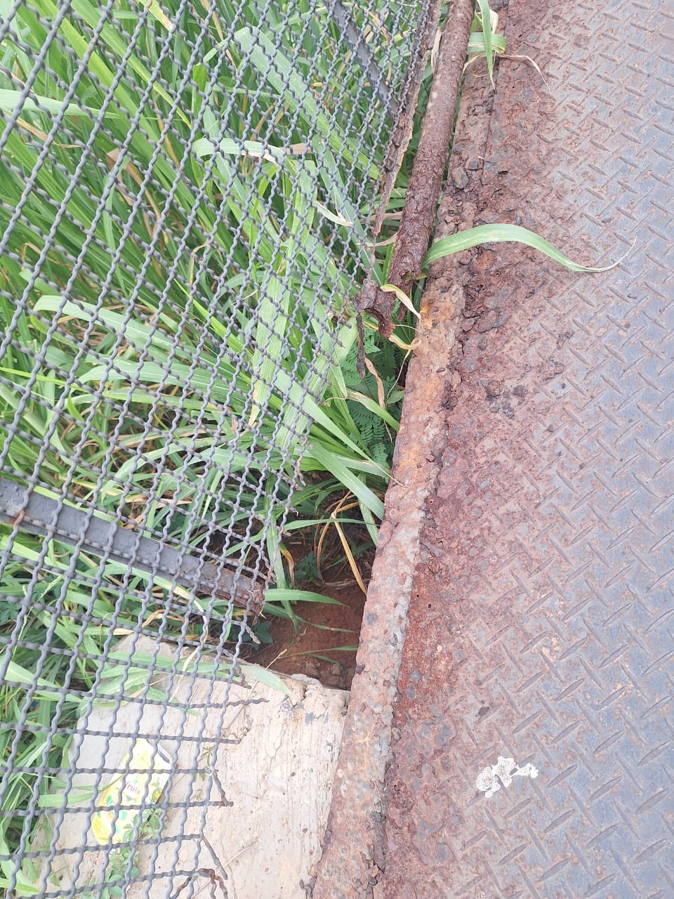 Segundo Rony Tavares, o equipamento público está com piso enferrujado, buracos na tela de proteção lateral e até frestas entre o piso e a proteção, situação que coloca em risco sobretudo crianças, que transitam pela região. Há ainda pontos de ferrugem acentuada na estrutura metálica.