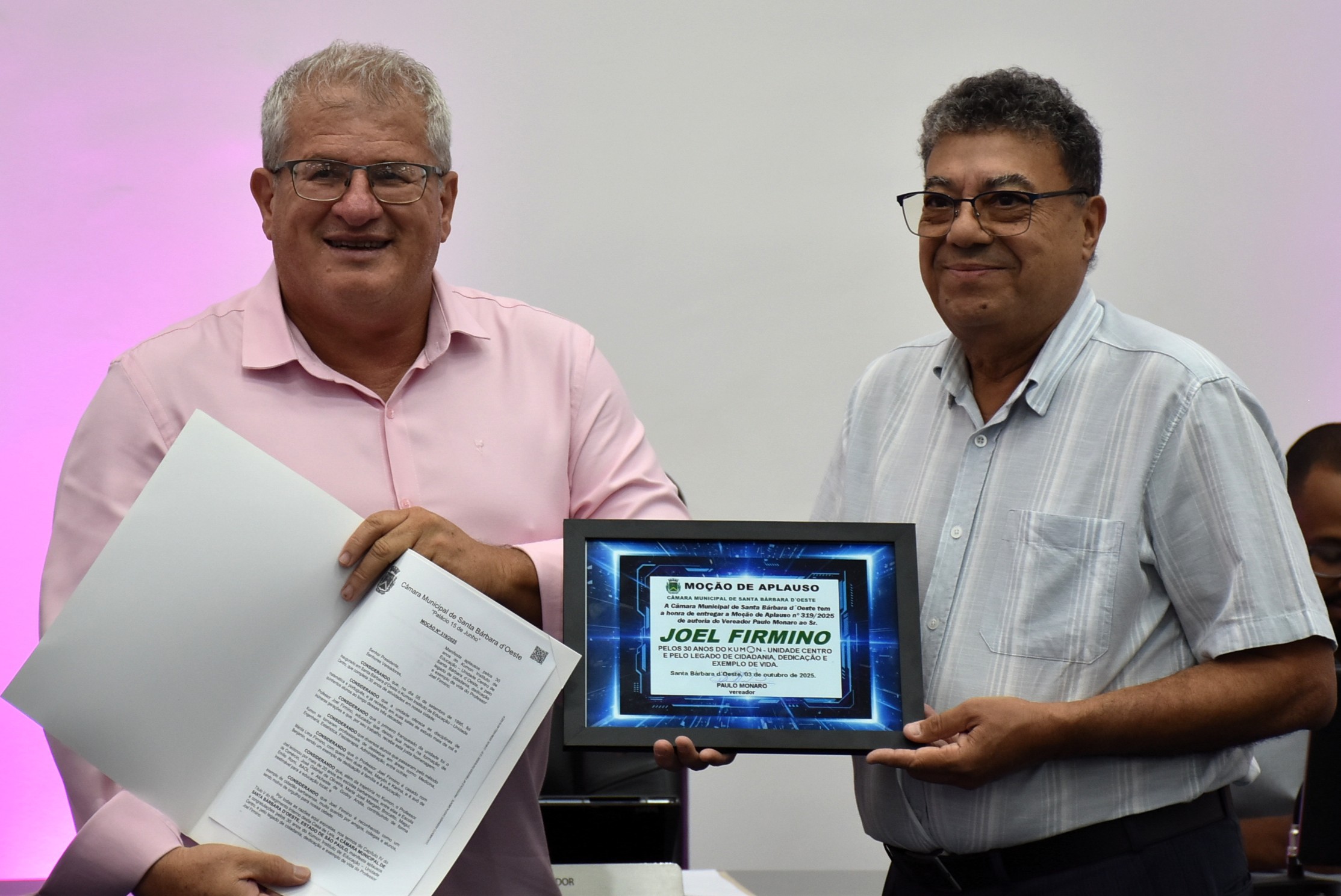 Durante a sessão também foi entregue a Moção nº 319/2025, de autoria do vereador Paulo Monaro, em homenagem aos 30 anos do Kumon Instituto de Educação – Unidade Centro de Santa Bárbara d’Oeste. A honraria foi recebida pelo professor Joel Firmino.